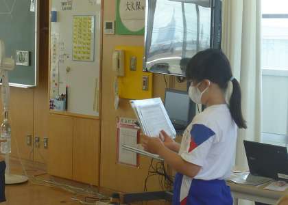 今日7月13日は、『いざ(13)!ノーテレビ・ノーゲームデー』です。保健委員が各教室にお知らせに行きました。今回が、1学期最後の取組になります。
