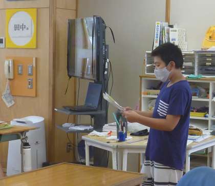 今日7月13日は、『いざ(13)!ノーテレビ・ノーゲームデー』です。保健委員が各教室にお知らせに行きました。今回が、1学期最後の取組になります。