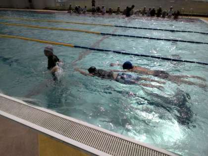 6年生はグループに別れて水泳学習を行いました。バタ足や蹴伸び等の基本的な動きを確かめたあと、速さや距離に挑戦しながら泳ぎました。