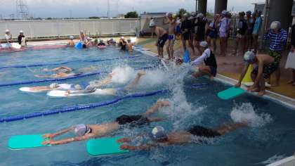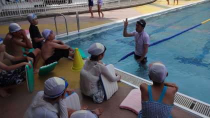水泳学習の様子です。今日は、校長先生が来てくださり、クロールの泳ぎ方を教えていただきました。教えていただいたことに気を付けながら泳ぐ姿が見られました。