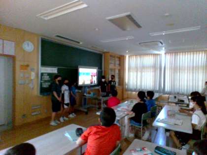 外国語科のUnit3では、おすすめの旅行先の様子を伝える表現活動を通して、話法に親しんでいます。今日は、子供たち自身で作成したプレゼンテーション資料を使って、発表しました。