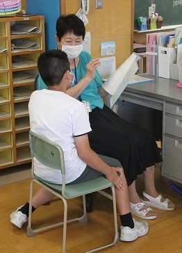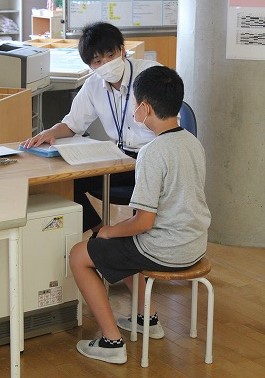 教室で、担任の先生から「あゆみ」をもらいました。先生からの温かい言葉とともに、一学期の自分の頑張りを振り返るひと時でした。