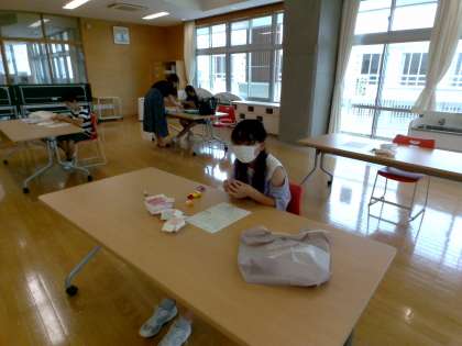 24日(火)育友会企画での交通安全マスコット作りが行われました。参加希望のあった6年生児童が、あおむしマスコットを作成しました。