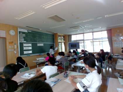 2学期初めての外国語の学習の様子です。夏休みの出来事についておおよその内容を確かめました。