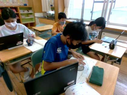 拡大図のかき方を学習しました。デジタル教科書のコンテンツを使い、かき方を確認しました。