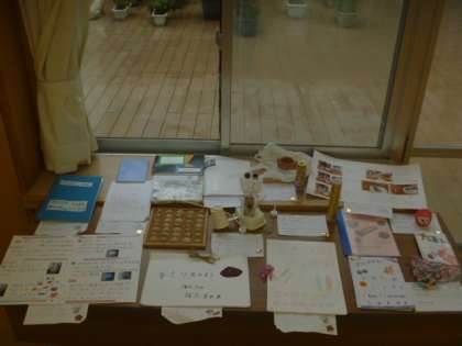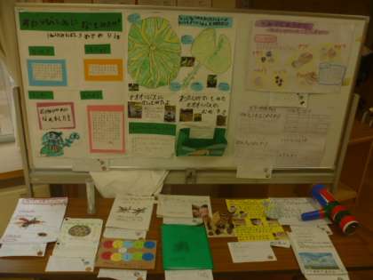 夏休みに取り組んだ工作や一人一研究などの作品が各教室に展示されています。