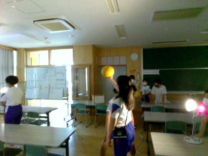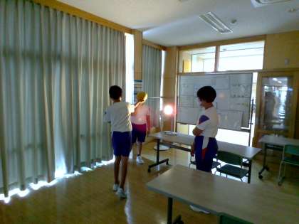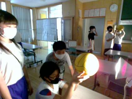 理科の月の満ち欠けと太陽光の関係があることを、実験を通して確かめていきました。月に見立てたボールの光り方の違いに気づくことができました。