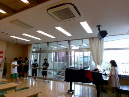 音楽科の学習では、「星の世界」の合唱に取り組んでいます。それぞれの旋律を確かめて歌う練習をしました。