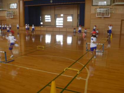 体育科の学習では、ハードルリレーを行いました。ハードルに引っかからないように気をつけて跳んだり、友達の走る姿を見て、上手にハードルを跳ぶための方法を考えたりする姿が見られました。