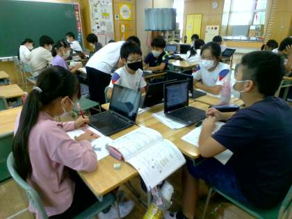 算数科では、自分たちで学習を調整しながら活動しています。今日は、奇数や偶数を計算で求める課題に挑んでいます。