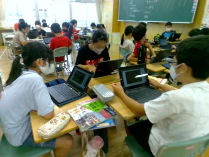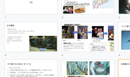 社会科では、水産業について教科書や資料を活用して学習し、スライドにまとめました。