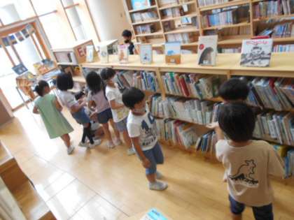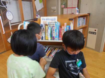 図書室をのぞいてみると、子供たちが本を借りに来ていました