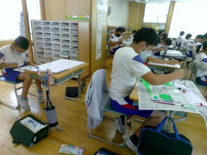 図画工作科「まだ見ぬ世界」では、写真から広がる世界を描いています。写真に使われている色を作ることの難しさや自分の世界を想像しながら描く楽しさを感じながら活動しています。出来上がる作品が楽しみです。