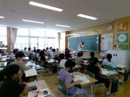 ビーカーに入れた水はどこへいくのかを、みんなで話し合いました。