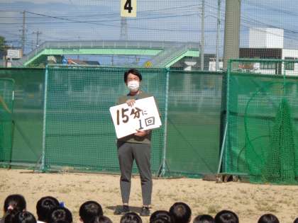 休み時間中の火災発生を想定した避難訓練を行いました。