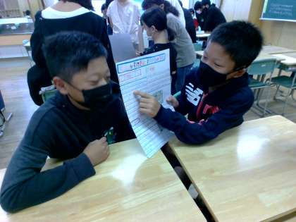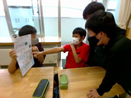 理科で火山活動や地震による大地の変化を調べました。調べたことを新聞にまとめ、内容を聞き合う時間にしました。友達の発言をしっかりと聞く姿が見られます。