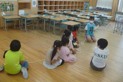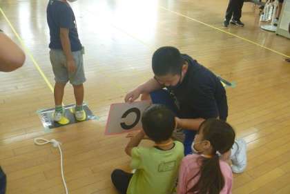 検診会場では、待っている列を整えたり、検診の仕方を優しく説明したりしています。
