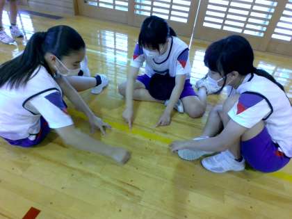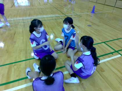 体育科では、「アルティメット」を行っています。お試しゲームも3回目になると、作戦を練り始める姿が見られました。