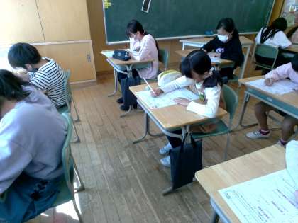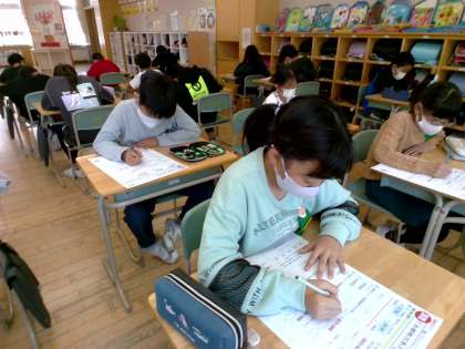 算数科「がい数の表し方と使い方」のカラーテストを行いました。どの位で四捨五入をするのかに気を付けながら、問題に取り組みました。