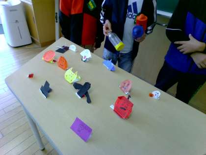 1組では、「楽しい工作係」が空気砲ゲーム大会を企画しました。