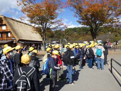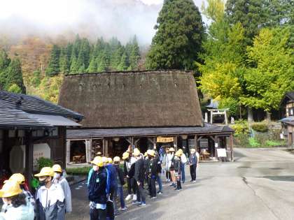 各自で考えた目当てをもとに校外学習に臨みました。相倉では、ガイドさんの話に白川郷の合掌造りとの違いを聞けたことで、合掌造りの違いを見る子供がいました。
