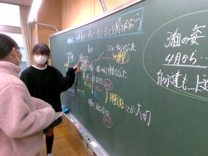 長縄集会を終え、学級で振り返り活動を行いました。話合いの中で、3組の継続した努力のよさを認め、成長するには努力が大切であると話していました。自分たちの努力もですが、学年の友達のよさを認めている姿に感心しました。