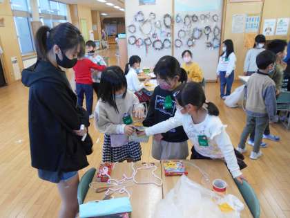 子供たちは、6年生に楽しんでもらおうと、遊び方を説明したり一緒に遊んだりして取り組みました。