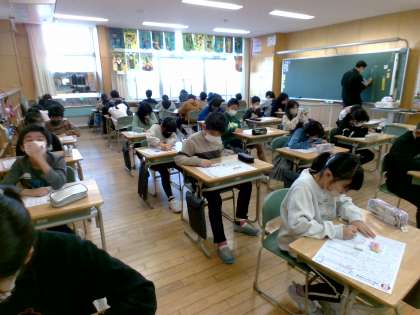 3組では、カラーテストを行っていました。学期末になり学習のまとめを行っている子供たちです。