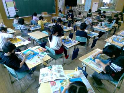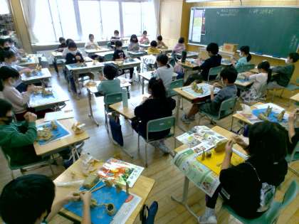 土粘土を切ったりこねたりしながら「ねん土マイタウン」を作りました。どんなマイタウンにしようか考え、いろいろな試しがら作っています。