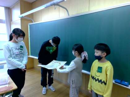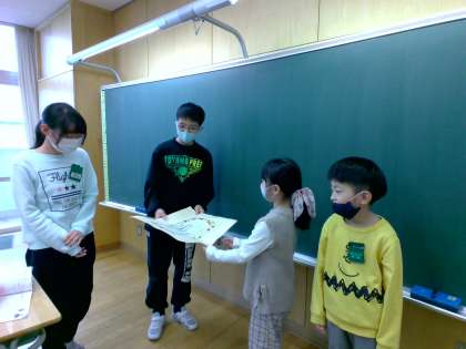 1年生が「おもちゃランド」の招待状を持って来てくれました。上手に言葉を伝えていました。久しぶりの1年生との触れ合いの時間が、とても楽しみです。