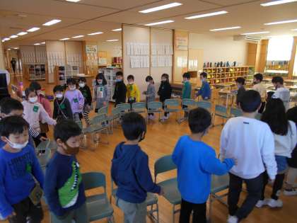 椅子取りゲームやクイズ、読み聞かせ等、みんなが楽しめる集会でした。