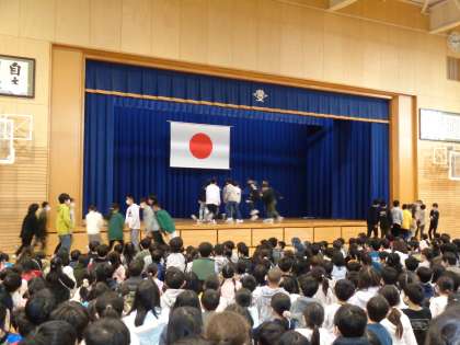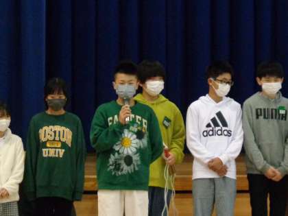 始業式、受賞紹介式後、1月16日(日)に開催される、第15回富山市小学生なわとび交流大会の壮行会がありました。