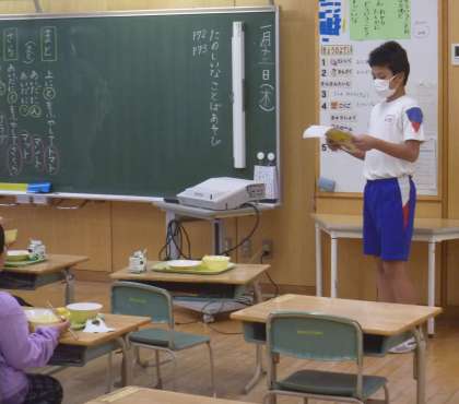保健委員が、各学級へ取組についてのお知らせに行き、目当て等について確認しました。