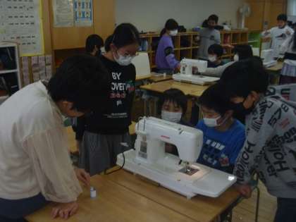 今日は安全なミシンの使い方を学習しました。糸を付けずにミシンを動かし、コントローラーを踏む力加減で針が動く速さが変わることを知りました。