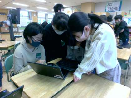 2組では、冬休み中に調べてきた不平等条約の改正に努めた人物についてグループで話し合いました。陸奥宗光と小村寿太郎の功績から日本の地位の向上を捉えていました。