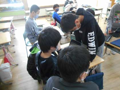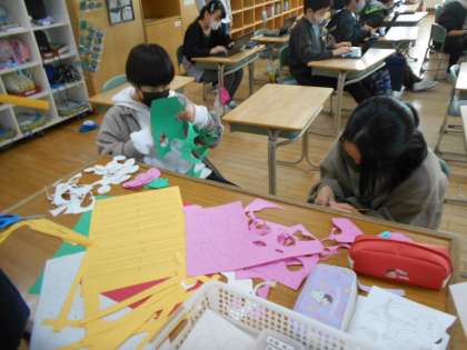 掲示委員会では、学校新聞の計画を立てたり、ピロティの竹馬の整頓を呼びかけるポスターを作ったりしていました。季節の飾り作りにも取り組んでいました。
