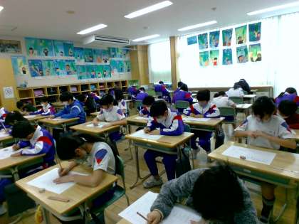 漢字チャレンジテストを行いました。冬休みも使って、練習に取り組んできた子供たちは100点を目指して、一画一画丁寧に書いていました。