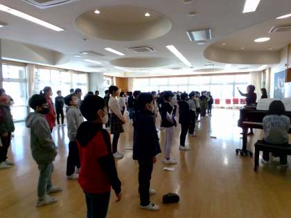 音楽発表会に向けて、講師の先生に指導していただきました。リズムに気を付けたり、はっきりと発声したりすること等、ポイントを絞って繰り返し練習していました。