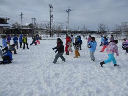 雪がたくさん積もったので、みんなで雪遊びをしました。雪だるまを作ったり雪合戦をしたりして、楽しい時間を過ごしました。