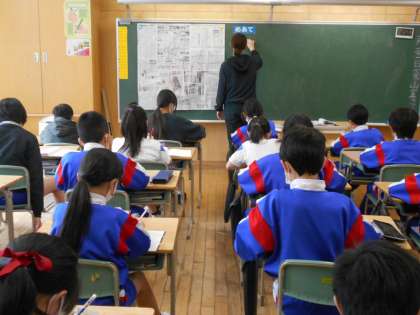 算数科では、「1平方メートル=10000平方センチメートル」を実物大の広さと比べながら学習していました。