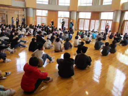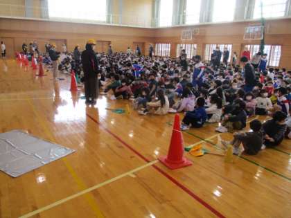 校区内に不審者が出たという想定で、保護者への引き渡しを含めて、避難訓練を行いました。豊田っ子たちは、緊急放送や先生方の指示を真剣に聞きながら、落ち着いて訓練に取り組みました。