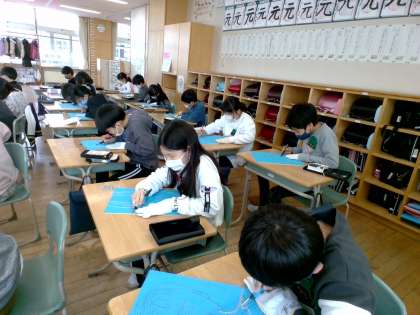 図画工作科の学習では、版画製作を行っています。今日は初めて彫刻刀を使いました。子供たちは力の調整が難しかったようです。