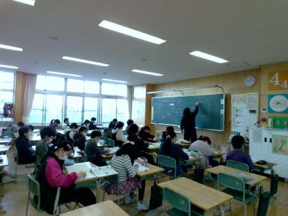 面積の単位について学習しています。「平方メートル」「a」「ha」等の単位で表すために、基になる面積の違いに気を付けて考えています。