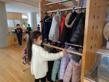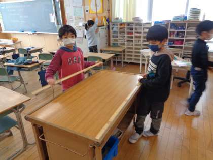 算数科では、1mものさしを使い、教室やワークスペースにあるものの長さを測りました。どれくらいの長さなのか、ワクワクしながら調べる子供たちです。