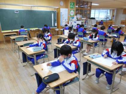 国語・算数の学習のたしかめ(期末テスト)に取り組みました。みんな真剣に取り組み、終わった後は何度も見直しをしていました。