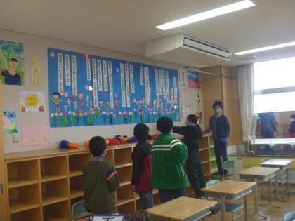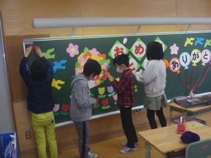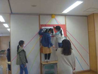 会場のアリーナを整えたり、6年生教室をきれいに飾ったりしました。