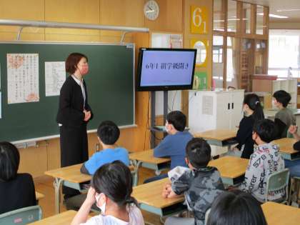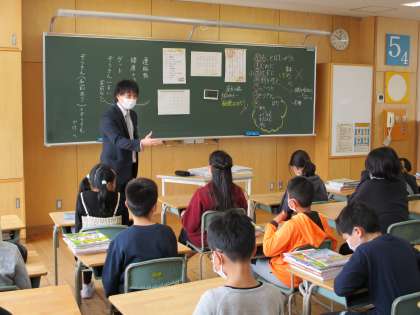 それぞれの教室で「学級開き」を行い、高学年として目指していきたい姿について、担任の先生から話を聞いたり、新しい教科書をもらったりしました。