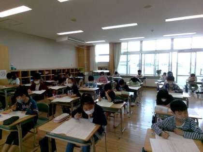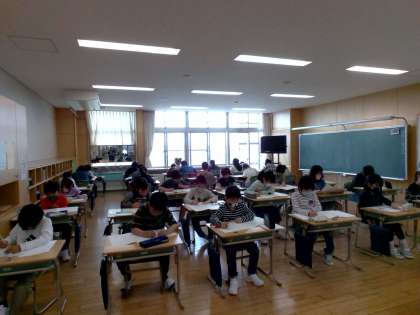 国語と理科の学力調査を行いました。子供たちは、今までに習ったことを思い出しながら一生懸命問題に取り組んでいました。