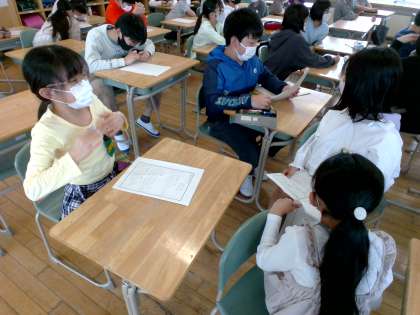 学級活動では、学級に必要な当番や学級目標を話し合いました。これまでの経験を生かして、意見を出し合っていました。