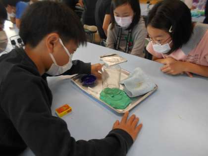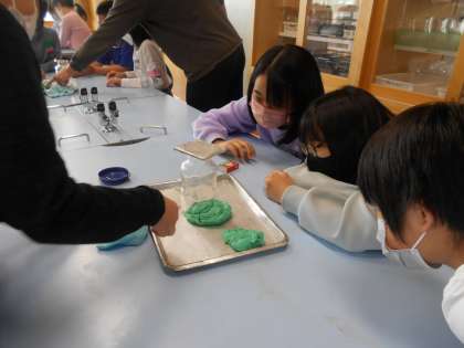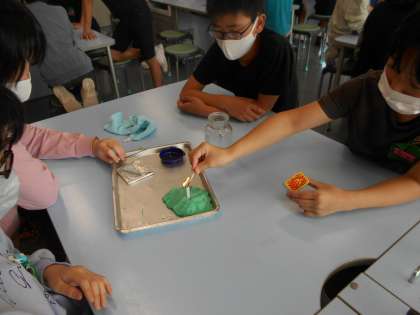 理科では、「物の燃え方と空気」について学習しています。線香の煙を用いて空気の動きを確認したり、集気瓶の中にろうそくを入れて、火が燃える様子を観察したりしました。空気の入り方によって燃え方がちがうことに気がついた子供たちでした。